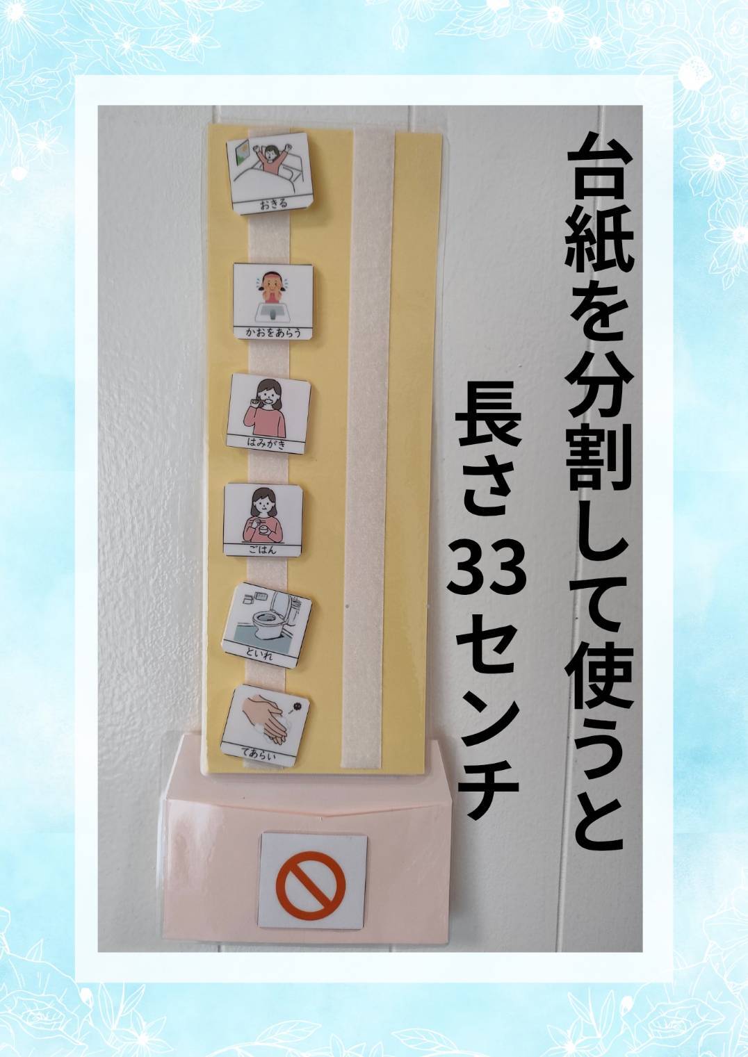 台紙1枚横9.7センチ縦26センチマジックテープ付き(全てを繋げると縦の長さは82センチです)