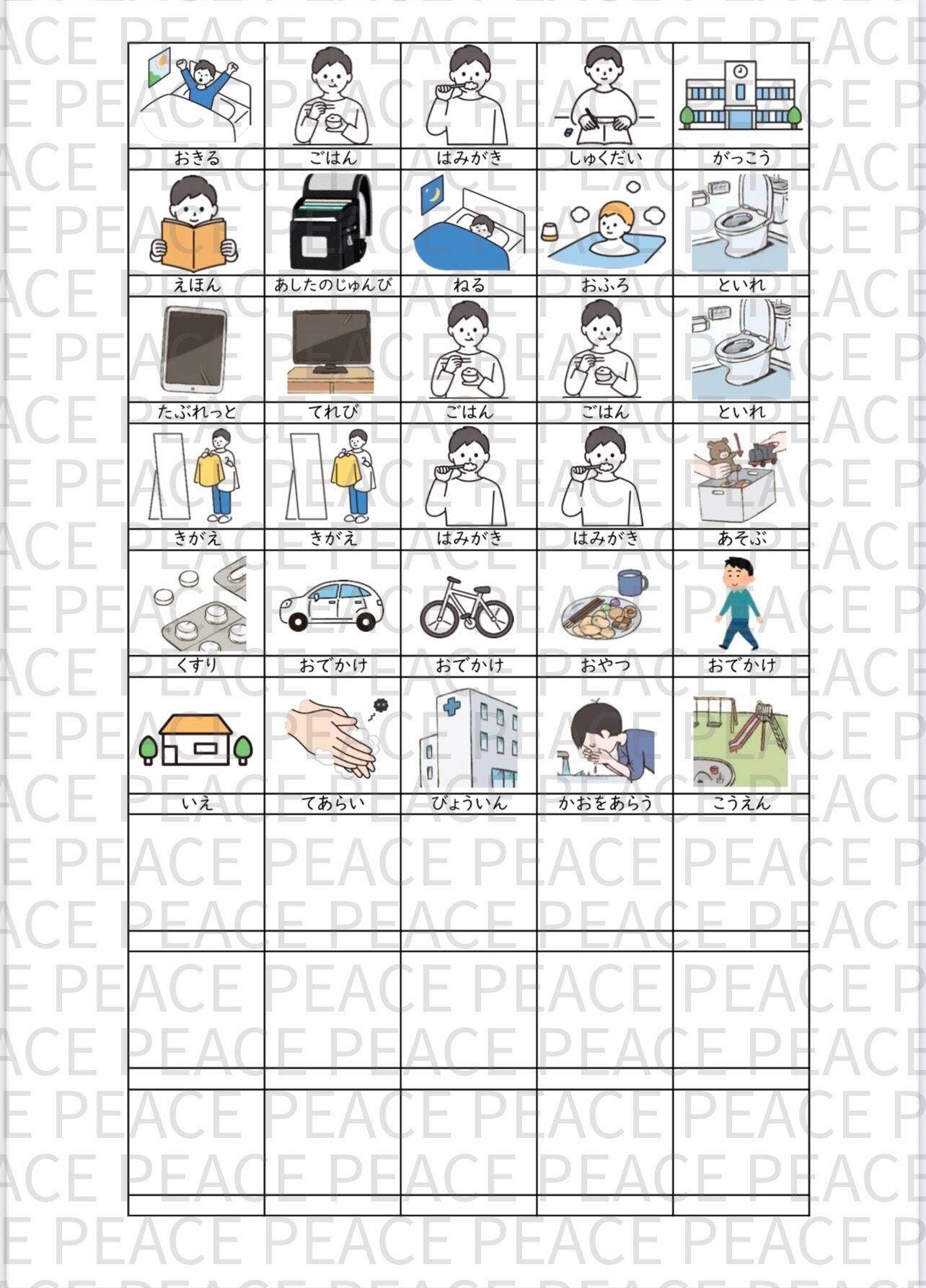 ・ダウンロードした画像を印刷し、ハサミで切り、ラミネート等してお使いください。マジックテープやマグネット等をつけて、台紙に付けても使いやすいです。