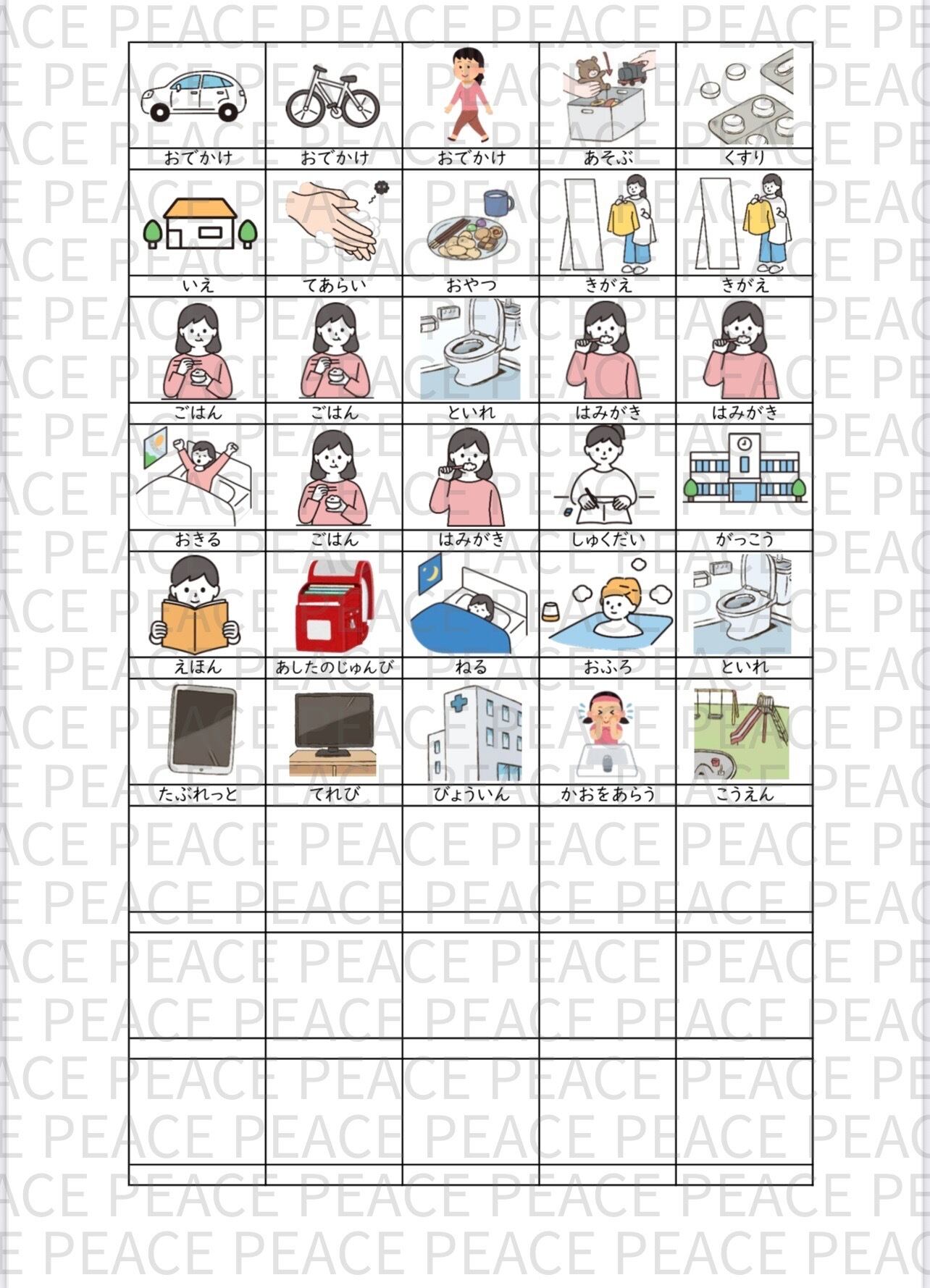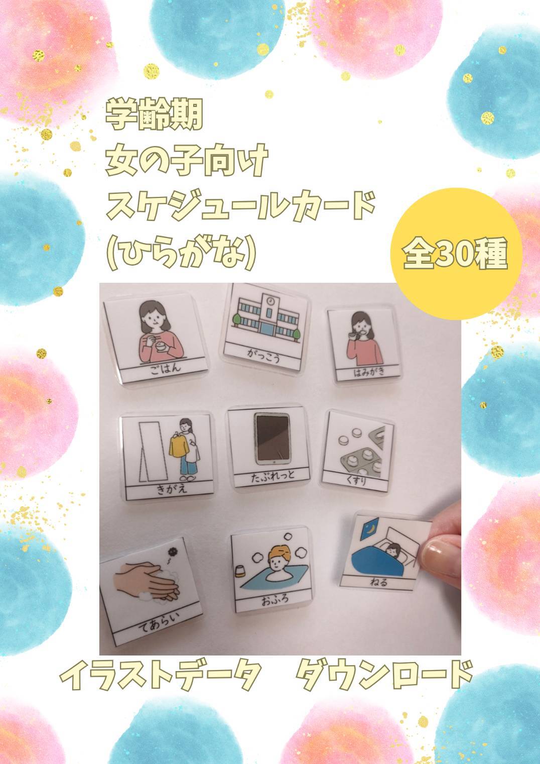 学齢期の女の子にぴったりなスケジュールカードが登場しました。イラストとひらがな表記で構成され、子どもたちが楽しく日々の予定を理解しやすくなっています。シンプルなデザインは、彼らに見やすく、スケジュール管理を自然に身につけるお手伝いをします。毎日のルーティンを楽しく視覚的に学ぶことで、自立心や時間感覚を育むことができるアイテムです。親子で一緒に楽しむことで、日常の生活がもっと充実したものになるでしょう。