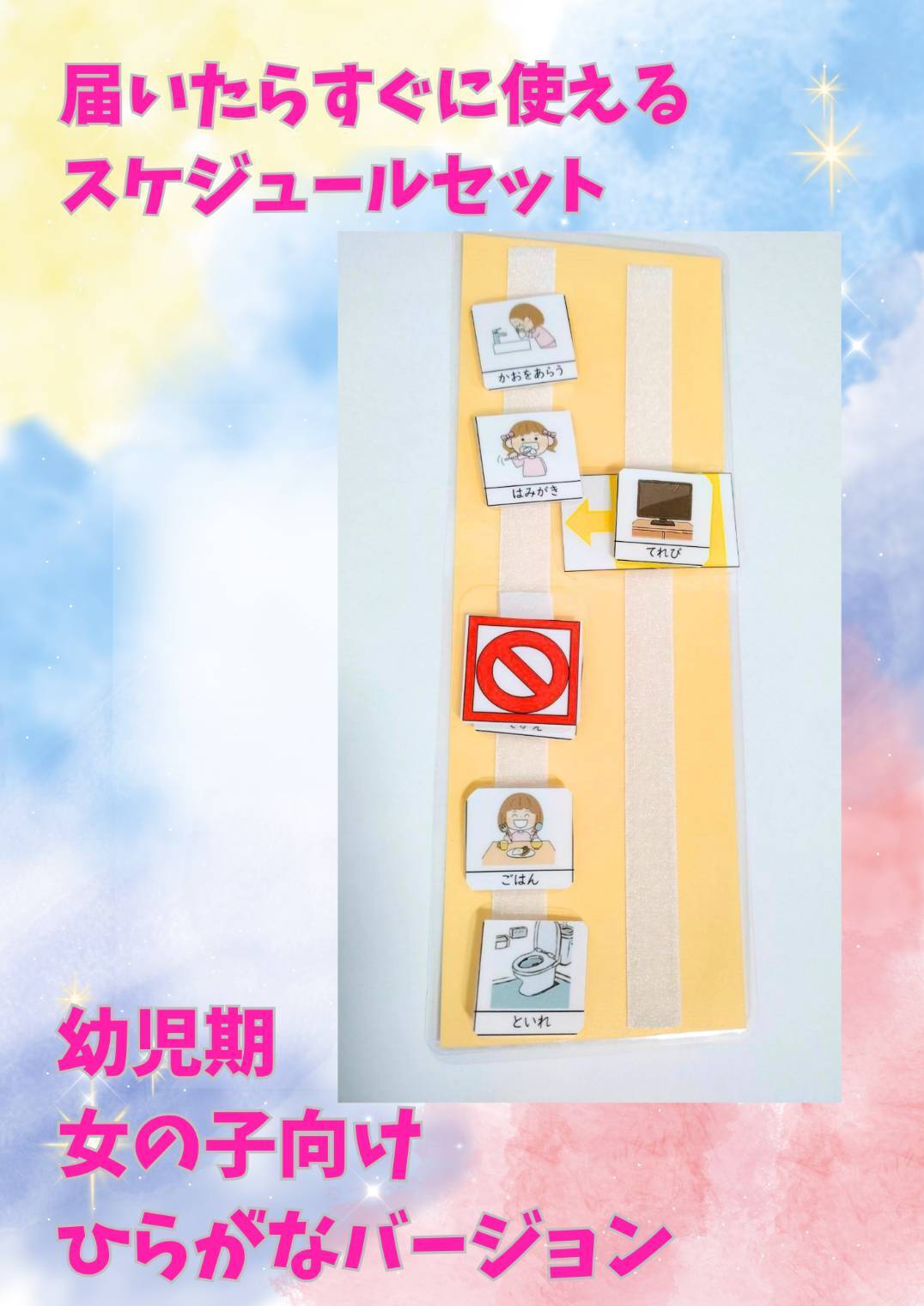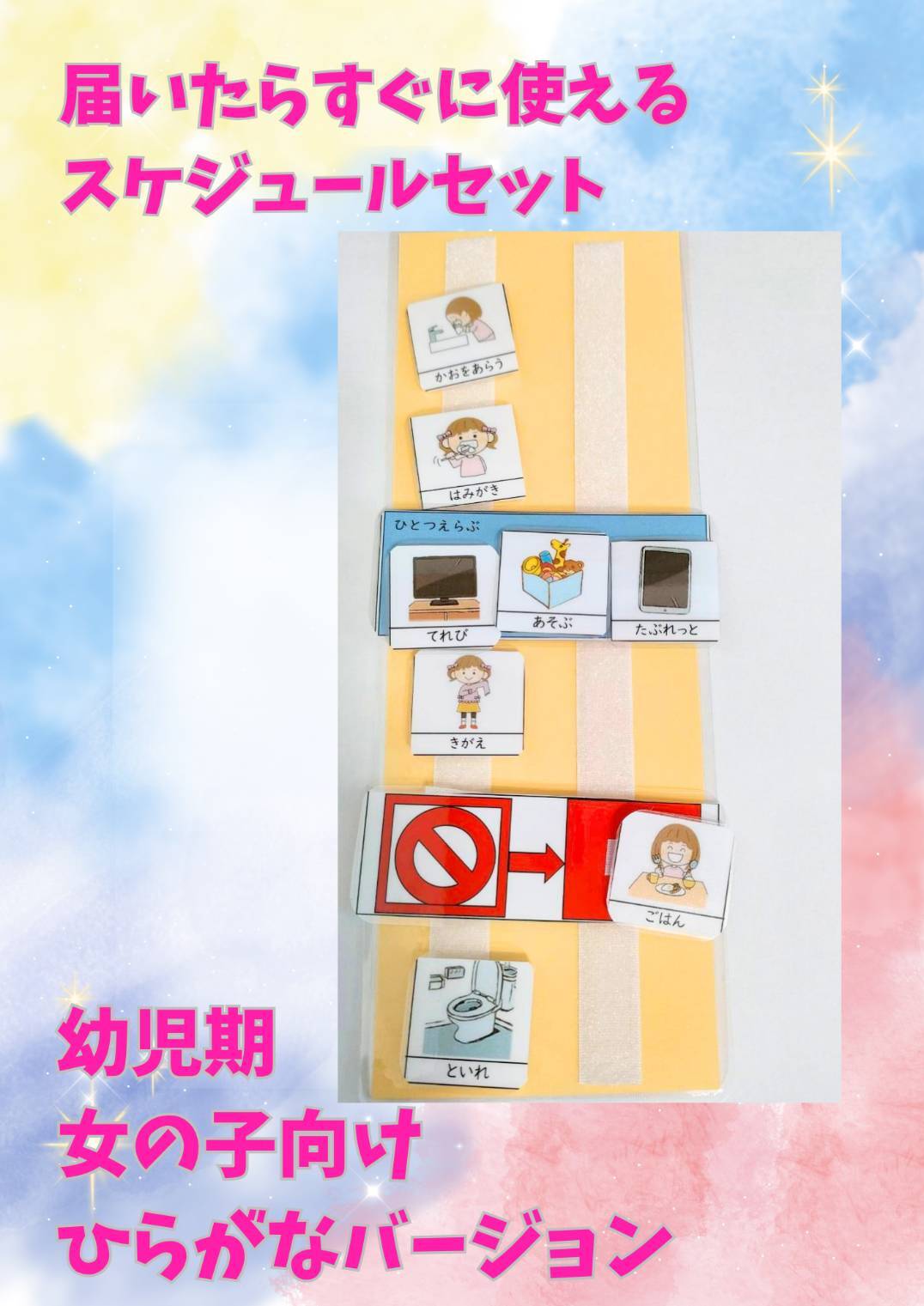 幼児期 女の子用スケジュールセット(イラストひらがな表記)